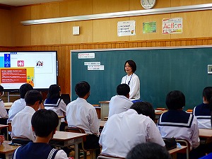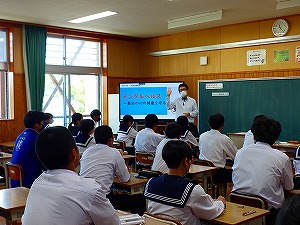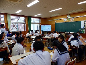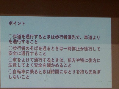 24日(金)の5校時、交通安全教室が行われました。講師には西都自動車学校から3名の先生がお見えになられました。特に自転車の安全な乗り方についてお話がありました。講話の途中にクイズもあり、楽しみながら自転車の乗り方などについて学ぶことができました。宮崎県は、ヘルメットの着用率が九州で最も低く、全国平均の半分ほどであるとの話もありました。改めて着用に向け、自分の命を守ることを最優先に考えた行動をとりたいものです。その先に待っている危険を予測することの大切さを強く感じました。講師の皆様、分かりやすく講話をしていただき、ありがとうございました。