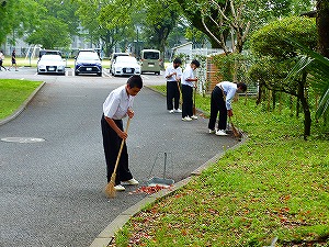 2日(木)の朝も、いつもと同じ光景が見られました。それは、部活動生によるボランティア活動です。毎朝、野球部が正門付近を、サッカー部が玄関付近の掃除をしています。学校の環境が整えられ、1日のスタートを気持ちよくきることができています。いつもありがとうございます。