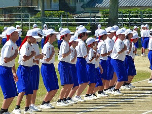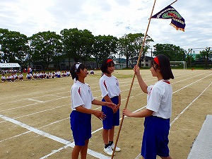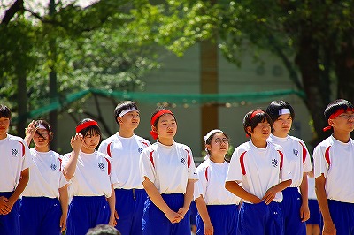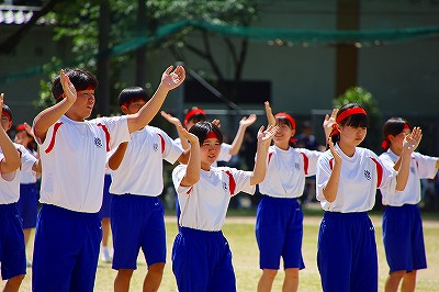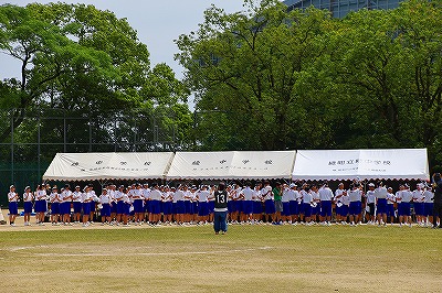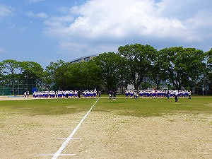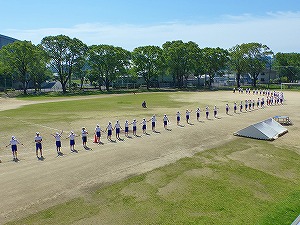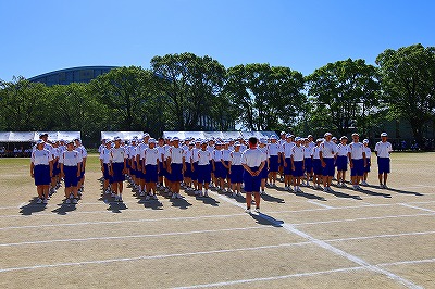 8日(水)の5校時、初めての体育大会全体練習がありました。実行委員会の皆さんから練習内容などの説明があり、初日は開閉会式を中心に練習しました。最後は各団に分かれ、気持ちを一つにさせてこれからの練習に取り組んでいくことを確かめ合いました。天気にも恵まれて何よりです。
