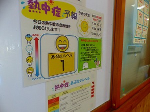 爽やかな風が吹いている5月ではありますが、日差しは強く感じられます。9日(木)の午後も、体育大会の学年練習が行われていました。生徒が、安心して安全に教育活動に取り組めるように、熱中症予報を毎日出し、職員室前廊下の掲示板に示しています。1日に4回、暑さ指数を測定し、生徒への注意喚起を行っています。今はまだ、「あぶないレベル」が1となっていますが、これから気温が上昇し、湿度が高くなってくると、危険度が増してくることが予想されます。熱中症についての正しい情報を知り、一人ひとりが意識して行動できるようになることを願います。
