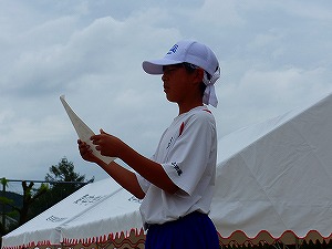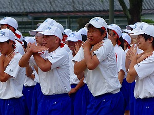 24日(金)の午後、地区中体連の激励会がありました。大会に出場する部活動や社会体育の競技ごとに、大会に挑むにあたっての決意が堂々とした態度で発表されました。その後、生徒会代表生徒及び学校長から激励の言葉が述べられました。そして、選手を代表して野球部3年の郡山和真主将から、最後の大会にかける思いをこめた選手宣誓がなされ、士気を高めることができていました。大会は、6月1日(土)の女子ソフトテニス競技をスタートに始まります。ほとんどの競技は、6月8日(土)~10日(月)となっています。保護者、地域の皆様方のご声援をよろしくお願いします。