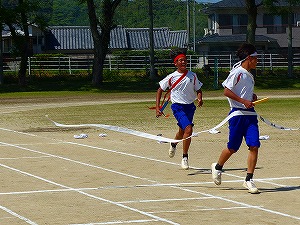 17日(金)は、朝から爽やかな日差しが注ぐ中、3、4校時に体育大会に向けた最後の練習を行いました。15日の予行練習で課題が残ったところを中心に練習して、最後の確認をしたところです。午後は、準備や役員の最後の確認をして、明日の本番に備えます。五月の青空が映えています。とってもいい青空です。