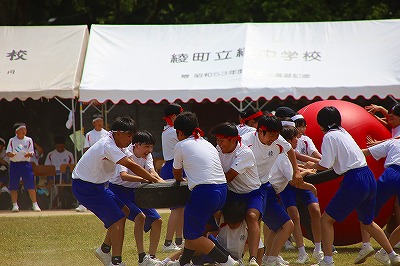 18日(土)五月晴れのもと、ご来賓の皆様をはじめ、保護者やご家族、地域の皆様に多数お越しいただいて、体育大会を盛大に開催することができました。生徒は、競技をはじめ、それぞれの役員の仕事などに精一杯に取り組むことができました。特に最後の応援では、赤白両団ともに団結し、綾中生の底力を見せてくれました。まさに本大会のスローガン「完全燃焼~さらに向こうへ!!Plus ultra~」にふさわしい大会となりました。さらに向こう側にある扉を自分たちの力で開き、これまでに経験したことのない素晴らしい景色を見ることができたと思います。生徒の皆さん、感動をありがとうございました。また、最後まで熱い声援を送っていただいたご来場の皆様に感謝申し上げます。併せて早朝より駐車場の案内や、会場内の見守り活動にご協力をいただいた綾中学校サポーターの皆様にも感謝申し上げます。さらに、生徒の頑張りを後押ししていただいた先生方にも感謝します。すべての皆様、本当にありがとうございました。これからも、綾中生は、何事にも前向きに頑張っていきます。