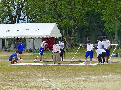 17日(金)の午後は、体育大会前日準備を行いました。各学年ごとに分かれて準備をしましたが、生徒たちはそれぞれに担当の場所で先生方の指導を受けながら、作業に取り組んでいました。仕事の早く終わった生徒から、「ほかに手伝うことはないですか?」と聞かれる場面もありました。準備も主体的に取り組めていた綾中生でした。生徒の皆さん、ありがとうございます。