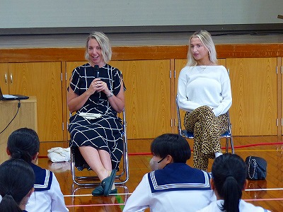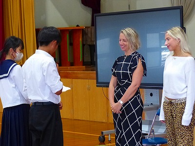 22日(水)の午前中、綾中学校のALTとして勤務(1999年~2000年)されていたイギリス在住のJennyさんが、お子様とともに来校されました。実に25年ぶりの綾中学校です。校長室では、当時のアルバムを懐かしく見ておられました。4校時には、3年生の皆さんと交流し、互いに親睦を深めることができました。生徒の皆さんは、綾町について、英語で伝えることを通して、ふるさと綾への誇りをもつことができ、また新しい発見があったことと思います。Jennyさんは、遠く離れたイギリスの地で、今もなお、綾町での思い出を持ち続けておられ、今回の交流活動へと結びつきました。3年生の保護者の方の中には、当時、綾中生として、Jennyさんと一緒に学ばれた方もいたようです。3年生の先生方や生徒の皆さんを中心に、交流活動を迎えるまでの諸準備を行っていただきました。ありがとうございました。綾のことを、ずっと思い続けていてくださる方が、地球という同じ星に存在することの偉大さを感じたひとときでした。