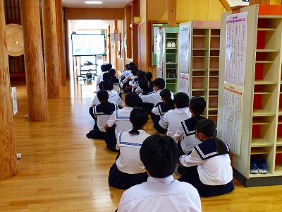 本校は、総合的な学習の時間のことを「てるはの時間」といって、魅力ある学習に取り組んでいます。1年生のテーマは「自然と共生するまち「綾」を探る!」です。23日(木)の午後、綾ユネスコエコパークセンターに行って、職員の方から話を聞いたり、展示物を見たり、生き物に触れたりするなどの活動を行いました。綾町が、なぜ、ユネスコエコパークに認められたのか、その背景について詳しく学ぶことができていたようです。話に真剣に耳を傾けたり、熱心にメモをとったりする姿が印象的でした。また、綾に生息する生き物を間近で観察し、興味を示していました。これから、綾中学校での総合的な学習が、本格的に始まります。ふるさと綾の魅力を再発見し、この町に、自分がどう貢献していくことができるのか、自分たちでしっかりと考え、学びの質を高めていってくれるものと期待しています。