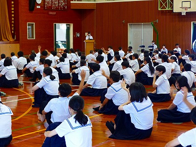 式の後は、夏休み中の過ごし方について担当の先生からの話を聞きました。