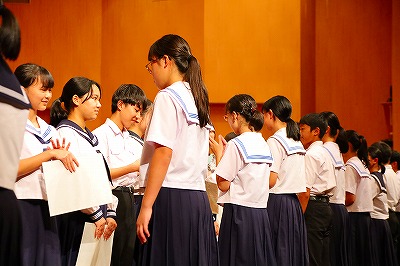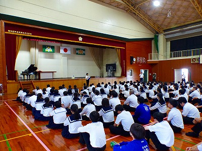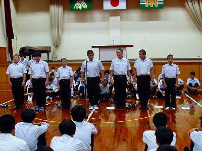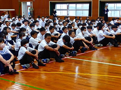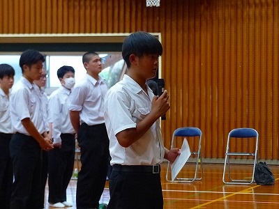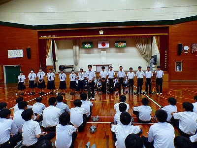 15日(火)の授業終了後に、中体連県大会及び宮崎地区駅伝大会の激励会を行いました。地区の激戦を勝ち抜き見事県大会への出場を果たした皆さん、そして学校代表として地区駅伝大会に出場する皆さんの健闘を祈ります。県大会が各会場で10月26日(土)から、駅伝大会が生目の杜運動公園で10月22日(火)に行われます。皆様のご声援をどうぞよろしくお願いいたします。