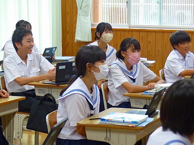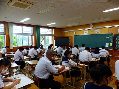 21日(月)の4校時、3年生を対象にした租税教室が行われました。宮崎税務署から講師の先生を招き、アニメの鑑賞をしたりスライドを使った説明を聞いたりしました。講師の先生から、税の使いみちや税の役割、税の必要性について分かりやすく話をしていただきました。生徒の皆さんは真剣に耳を傾けていました。将来の納税者としての資質を養うことができたことと思います。講師の先生、ありがとうございました。