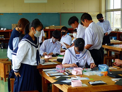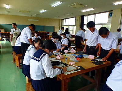 8日(火)の午前中、2年生が「旅する美術教室」と題して作品づくりに取り組みました。講師には、宮崎県立美術館からお二人の先生がお見えになり、丁寧に分かりやすくご指導をしていただきました。生徒たちは、フォトデッサンを体験して、思い思いに工夫を凝らした作品を仕上げていました。大変貴重な経験をさせていただきました。講師の先生方、ありがとうございました。
