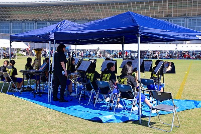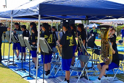 本校吹奏楽部の皆さんが、13日(日)に開催された綾町民スポーツ祭で花を添えてくれました。開会式での国旗や町旗掲揚の際に、国歌や綾町民歌を演奏しました。練習期間が短かったのですが、よく頑張ってくれました。これからも、地域に貢献できる綾中学校を目指します。吹奏楽部の皆さん、ご指導していただいた顧問の先生、ありがとうございました。