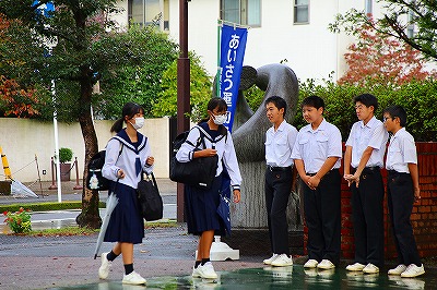 3連休明けの15日(火)、小雨もぱらつく中ではありましたが、あいさつ運動が行われました。お互いに元気のよいあいさつを交わすことができると、一日のスタートも気持ちよくなりますね。