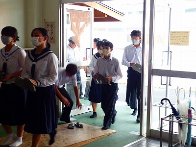 16日(水)の授業終了後に、地震を想定した避難訓練を行いました。前回の予告無し訓練とは違う内容で行い、アクションカードを使った訓練をしました。教師の動きがこのカードで何をすればよいのか、分かるようになっています。生徒の皆さんは、落ち着いて避難ができていました。今回の訓練での課題は、次回に生かしていきます。