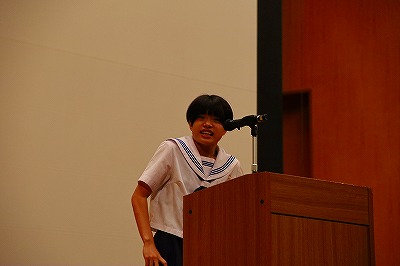 7日(月)、宮崎市民文化ホールにおいて、宮崎県中学校英語暗唱大会が開催されました。本校から、東諸地区の大会で第1位に入った2年生の吉田ひなたさんが出場しました。県大会でも堂々とした発表をし、優秀賞をいただきました。大変良く頑張りました。