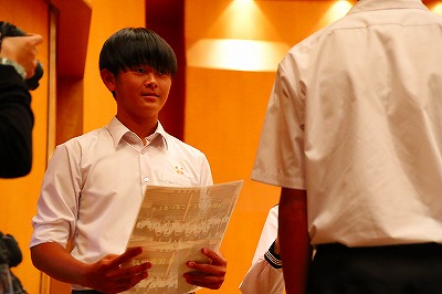 18日(金)の学習発表会終了後に、町文化ホールで生徒会役員退任式・認証式を行いました。まずは、旧役員の皆さんが一人ずつ挨拶しました。新役員から感謝の意味をこめて記念品が贈られました。最後に新役員の皆さんに認証状が授与されました。旧役員の皆さんは、学校のために大きく貢献しました。この貴重な経験が今後に生かされていくと思います。本当にありがとうございました。そして、新役員の皆さん、綾中学校の伝統を受け継いでもっともっと学校を盛り上げていってほしいと思います。よろしくお願いします。