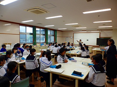 7日(月)、1年生の教室で国語の授業公開がありました。授業者は、本校の指導教諭(ST)の甲斐先生です。教材は「竹取物語」で、学習のねらいは、「文語のきまりを知って音読し、古典特有のリズムを通して古典の世界に親しむ」でした。歴史的仮名遣いを確認して、冒頭部分の音読に一生懸命に取り組む生徒たちでした。授業者の甲斐先生、お疲れ様でした。参観をしていただいた他校の先生方にも感謝します。ありがとうございました。