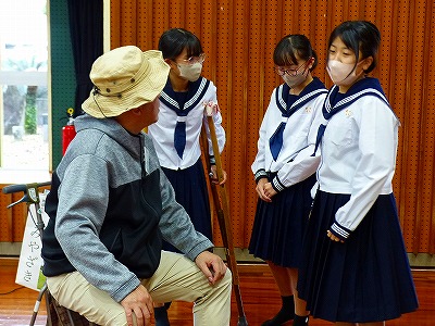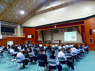 8日(金)の午後、1年生を対象とした「認知症サポーター養成講座」が開かれました。この講座は毎年実施しているもので、町や介護施設の方々から認知症の症状や患者の数などについて説明を受けました。また、実際に認知症の役を演じた方に対して、どう対応すればよいのかを体験しました。生徒は初めての体験のため、どう声かけすればよいのか、対応の仕方に戸惑う場面も多々見られました。今回の講座で学んだことを生かして、優しい気持ちをもって自分の家族に接するように地域の人たちとも接することのできる綾中生であってほしいと思います。関係機関の皆様方、ありがとうございました。なお、この講座の様子は、当日の夜のMRTニュースで放映されました。