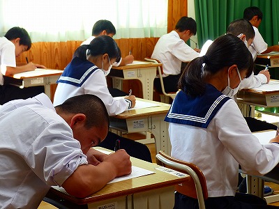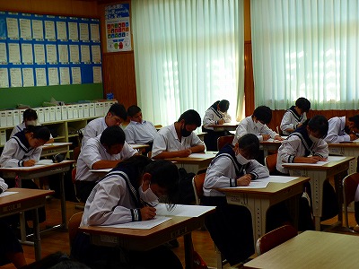 第3回目となる定期テストが、12日(火)、13日(水)の2日間で行われています。対象学年は3年生です。いつものことながら、テストのときは、教室が静まり返り、コトコトという筆記用具の音だけが聞こえてきます。全力でテストに向き合っていることと思います。
