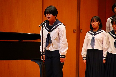 7日(木)の午前中、綾町文化ホールで、郡の音楽大会が開催されました。本校からは、3学年の全生徒が参加し、「友~旅立ちの時~」を披露しました。学習発表会でも歌いましたが、男女の声がバランス良く響いており、3年生の絆の深さを感じました。郡内の各小中学校の合唱も聴くことができ、心地の良いひとときが過ごせました。最後には、全体で「翼をください」を歌って幕を閉じました。3年生の皆さん、素敵な歌声をありがとうございました。また、3年生は、前日準備、当日の後片付けまで手伝ってくれました。ありがとうございました。