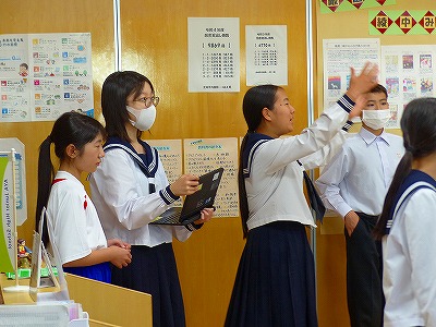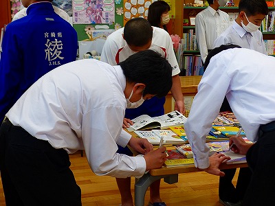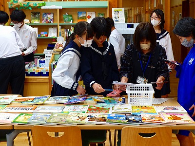 6日(水)と7日(木)の昼休み時間に、選書会がありました。これは、選書投票を行って、希望の多かった本の購入を検討するものです。図書室には新しい本がズラリと並べられ、生徒たちは思い思いに本を手にとっていました。また、図書委員会によるクイズも行われ主体的な取組が進められています。自ら選書することで、本に親しむ態度が養われていくと思います。