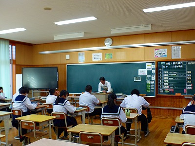 26日(火)、熊本県の高森町から2名の先生方が来校されました。綾町はこれまでに高森町の学校に行って授業づくりなどを学んでいます。本校の授業の一部ではありますが、参観していただきました。生徒たちは、いつものように元気よく授業に取り組んでいました。12月には綾町から高森町の学校に研修に伺う予定になっています。高森町の先生方、来校ありがとうございました。
