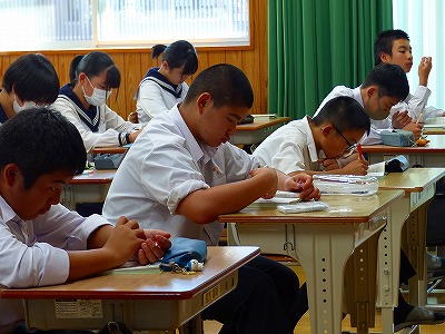 綾町の秋の伝統イベントである「綾工芸まつり」が、22日(金)から3日間の日程で始まりました。生徒たちは、学年ごとに分かれて伝統工芸品の数々を鑑賞しました。特に、木工製品のパズルなどは人気が高かったようです。初日は平日にも関わらず、訪れる人がたくさんいました。鑑賞後は、教室に帰って感想を書きました。土曜日、日曜日と開催されているので、興味のある人は、またゆっくりと鑑賞してください。