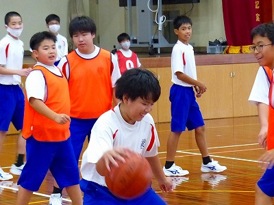 現在、どの学年ともに、体育の授業は、バスケットボールとソフトボールに取り組んでいます。14日(木)の午後は、1年生が元気よく楽しそうにゲームに取り組んでいました。