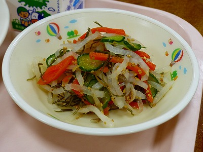 27日(水)の給食は、延岡の郷土料理「八杯汁」でした。具だくさんで、野菜がたっぷりと入っていました。その他のメニューは、高菜ごはん、豚肉のみそ炒めで、今日もおいしくいただきました。給食に関わっていただいているすべての皆様に感謝します。いつもありがとうございます。