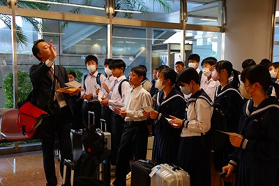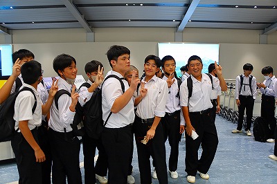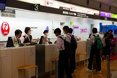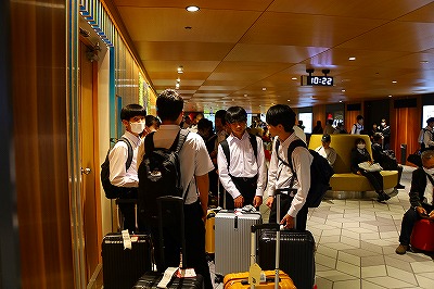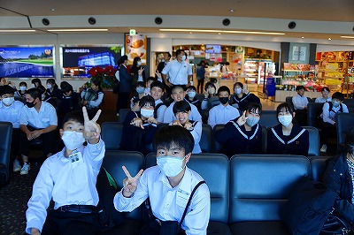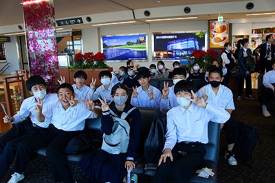 健康面の心配もなく、時間もきちんと守り、予定より早め早めに行動できている2年生。たくさんの思い出とともに、あと30分ほどで、大阪空港を離陸します。夕焼けの美しさに思わずシャッターを切る生徒たち。自然の美しさに素直に感動できる綾中生にほっこりします。