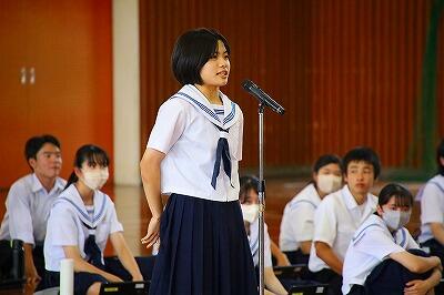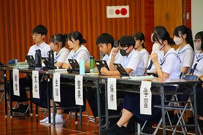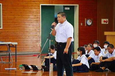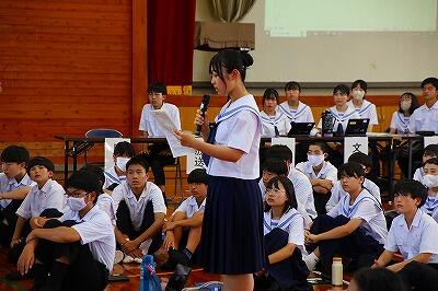 20日(金)の午後、生徒総会が行われました。今回は特別に、地域の方々にも学級討議から参加していただき、「中学生が地域にどう貢献できるか」という視点で貴重な助言をいただきました。当日は前半にオンラインで各委員会の取組などを発表、後半には体育館での全体討議を実施しました。テーマは「綾マラソンをどう生かせば、綾の魅力が伝わり、綾に関わる人を増やせるだろうか」です。各学級から前向きな意見が次々と出され、地域の方の講評でも、生徒の真剣な姿勢が高く評価されました。今後は、生徒会を中心に地域の方々と協力しながら、取組を具体化していきます。生徒総会の開催にあたり、丁寧にご指導していただいた担当の先生方、ありがとうございました。議長や生徒会役員をはじめ、学級役員の皆さんも大変よく頑張ってくれました。
