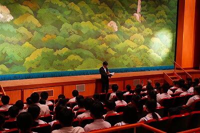 23日(月)の午後、綾町文化ホールで朗読劇がありました。「蒼天の向こうへ」という劇は、戦争末期、知覧特攻基地から出撃した延岡出身の特攻隊員と、その父親の想いを綴った内容です。父が書き残した手記をもとに構成された本作は、息子を送り出す父の苦悩を深く伝える構成となっていました。過去を風化させず、平和の尊さを心に刻む時間となりました。朗読の一節一節が、私たちの胸に深く染み入り、戦争とは何か、命とは何かを問いかける感動の劇となりました。上演していただいた皆様に感謝します。ありがとうございました。