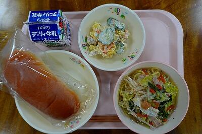 16日(月)は、ひむかの日給食でした。メニューは、「ミルクパン、梅塩ラーメン、さつま芋サラダ」です。綾町産の小松菜、さつま芋、きゅうり、宮崎県産の豚肉が使われています。おいしくいただきました。給食に関わっていただいているすべての皆様に感謝します。いつもありがとうございます。