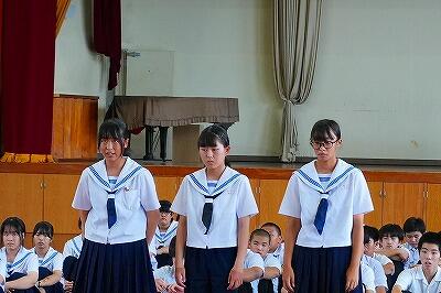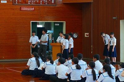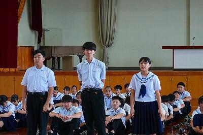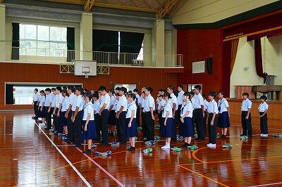 25日(木)、秋の中体連大会に向けて、激励会が行われました。この大会は、新チームにとって初めて挑む舞台です。先輩が残してくれた伝統と思いを受け継ぎ、これからは自分たちがチームをつくり上げていく番です。緊張や不安もあるでしょうが、仲間と積み重ねてきた努力を信じて、全力で戦い抜いてください。新しい歴史を刻む皆さんに、大きな期待と声援を送ります。大会は27日(土)から始まります。皆様、応援をよろしくお願いいたします。