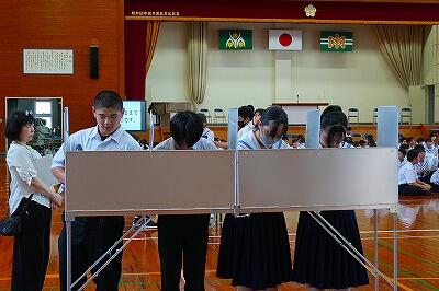 18日(木)の午後、生徒会役員選挙にともなう立会演説会が行われました。立候補した生徒たちは堂々とした態度で公約を語り、応援者の演説もまた、仲間の良さや思いを熱く伝えるものとなりました。演説を聞く中で、誰が役員になっても安心して任せられるという確信をもつことができました。演説終了後には投票が行われ、学校全体で選挙の緊張感と充実感を共有しました。準備から当日の運営まで尽力してくれた選挙管理委員会の皆さんに、心から感謝します。ありがとうございました。