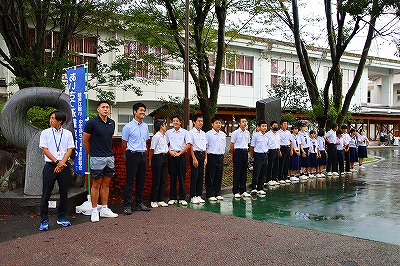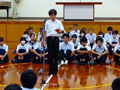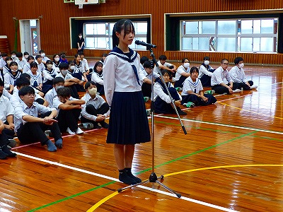 15日(火)の授業終了後に、中体連県大会及び宮崎地区駅伝大会の激励会を行いました。地区の激戦を勝ち抜き見事県大会への出場を果たした皆さん、そして学校代表として地区駅伝大会に出場する皆さんの健闘を祈ります。県大会が各会場で10月26日(土)から、駅伝大会が生目の杜運動公園で10月22日(火)に行われます。皆様のご声援をどうぞよろしくお願いいたします。