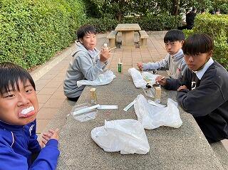生徒に人気の「キムタクごはん・もずくスープ・千切り大根のマヨあえ」を試食していただきました。試食後は、学校栄養職員の楠本さんから給食について詳しい説明を聞かせていただきました。