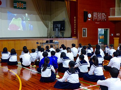 21日(月)の4校時、3年生を対象にした租税教室が行われました。宮崎税務署から講師の先生を招き、アニメの鑑賞をしたりスライドを使った説明を聞いたりしました。講師の先生から、税の使いみちや税の役割、税の必要性について分かりやすく話をしていただきました。生徒の皆さんは真剣に耳を傾けていました。将来の納税者としての資質を養うことができたことと思います。講師の先生、ありがとうございました。