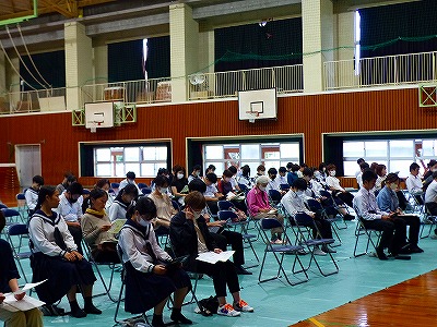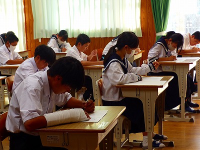 1日(金)の6校時、進学説明会を行いました。3年生は大きな学校行事も終わり、いよいよ受験モードに入っていきます。説明会では、学年担当の先生から、詳しい資料やプレゼンを使っての細かな説明がありました。これから進路を決定していく時期になります。保護者の方との十分な話し合い、先生方の助言などを参考にしながら、悔いのない進路が決められることを願います。