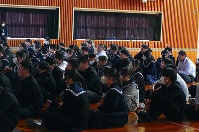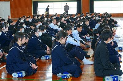 5日(木)、1・2年生を対象に「先輩の声を聞く会」を行いました。本校を卒業した3名の先輩が来校し、現在通っている高校での生活や学習の様子、そして進路を考えるうえで大切にしてほしいことなどを、実体験をもとに語ってくれました。特に印象に残ったのは、「勉強の習慣だけは今のうちに身に付けておいた方がよい」という言葉でした。日々の積み重ねの大切さを、先輩自身の経験を通して語ってくれたことで、生徒たちにとっても大きな学びとなったようです。身近な先輩から直接話を聞くことができた今回の会は、生徒にとって進路を考えるうえでとても意義深い時間となりました。貴重な話をしてくれた先輩方に心から感謝しています。これからも後輩たちの良き先輩として、ますます活躍してくれることを願っています。ありがとうございました。
