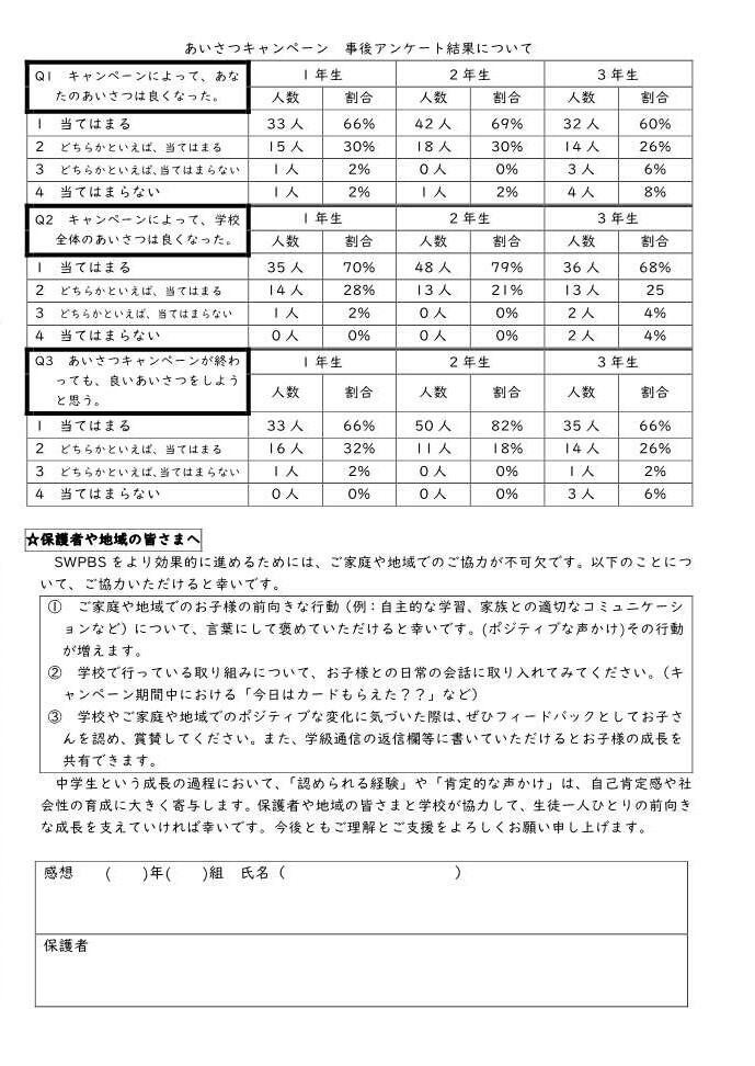 第2回は学年ごとにターゲットとする行動目標を定めて学年ワイドで実施します。