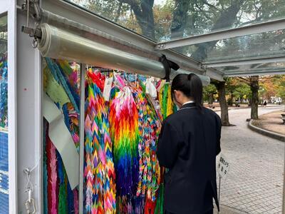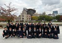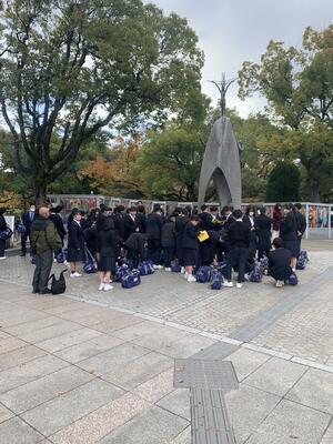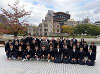昨夜の雨が嘘のような晴天になり、早朝6時15分に予定通り出発しました。9時30分には、新八代駅で新幹線への乗車も練習の時と同様に手際よくできました。その後、広島の平和記念公園を訪れ、平和学習を行いました。生徒たちは原爆の悲惨な状況を見聞きし、戦争の恐ろしさについて深く学ぶことができました。それから全員で原爆の子の像を訪れ、心を込めて折った千羽鶴を捧げて、平和の誓いをたてました。