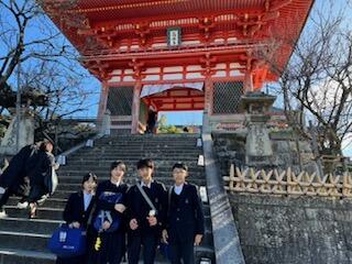 11月28日(木)、修学旅行の2日めは、丸1日かけて京都市内で自主研修を行いました。生徒たちは14の班に分かれて、あらかじめ自分たちで設定したコースを巡りました。この時期はたくさんの学校が修学旅行で訪れていることに加えて、外国からの観光客も多く訪れていました。バスに乗りたくても、やって来るバスがどれも満員で乗ることができないといったトラブルもありましたが、生徒たちは力を合わせて問題を解決し、計画を完遂することができました。ホテルに戻ってきた生徒はみんな成就感と自信に満ち溢れた、とてもいい表情をしていました。生徒たちの大いなる成長を感じることができた修学旅行2日めでした。