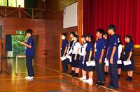続けて校長先生の話では、「下した選択がその人をつくる」という言葉が紹介されました。あいさつをするかしないかといった日常の何気ない選択を、毎日毎日、幾つも幾つも重ねることで、人は自分自身をつくっているという話しをされ、正しい選択をして、いざというときに自信のもてる自分をつくりあげていこうと伝えられました。