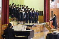3月17日(月)、第78回卒業式を行いました。前日までの暴風雨も収まって、当日は澄み切った晴天に恵まれました。式では凜とした空気が漂う中、担任の先生の呼名により、一人一人に卒業証書が手渡されました。1年間、飫肥中学校の最高学年として1・2年生を引っ張ってくれた3年生、最後となる卒業式にも立派な態度で臨み、飫肥中の伝統のバトンをしっかりと後輩たちに引き継いでくれました。卒業していく3年生の、保護者や地域の方々、先生方、後輩たちに対する感謝の気持ちと、1・2年生の3年生に対する感謝の気持ちが、所作や歌声にしっかりと現れた素晴らしい卒業式となりました。校歌にも歌われているとおり、これから先、希望と理想を高く掲げ、それぞれの未来に向かって力強く進んでいく卒業生の道に、常に光あれと心から願っています。
