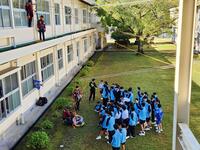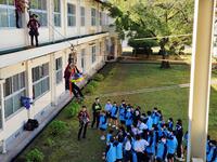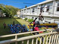 11月14日(金)、日南市消防本部の皆さんにご協力をいただいて、1年生が人命救助の体験ワークショップを行いました。中庭にロープを張って行った本格的な体験に、1年生たちは興味津々で取り組んでいました。お忙しい中、丁寧に準備して貴重な体験をさせてくださった日南市消防本部の皆さんに心から感謝しています。