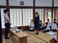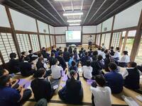 はじめに、日南市教育委員会の佐藤智文先生をお招きし、かつて小村侯も学び舎とした飫肥藩の藩校・振徳堂にて記念講話が行われました。静寂に包まれた学び舎には、志高く学んだ藩士たちの気配が今も息づいているかのようで、生徒たちはその空気を全身で受け止めながら、先生のお話に深く耳を傾けていました。