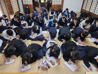 11月19日(水)飫肥小学校の栄養教諭、徳永紗和先生をお招きして3年生が食育の授業に臨みました。これから始まる本格的な受験シーズンを前に、まずは健康を維持するために必要な知識を身に付けることが目的です。「受験に打ち勝つための食生活を考えよう」というテーマの下、ワークショップを行ったりクイズを交えたりしながら食事と睡眠、その他運動などについて分かりやすくお話をしていただきました。最後に、受験を乗り切るためには、①朝食を必ずとること、②食事は主食・主菜・副菜をそろえること、③夜食は消化のよいものを中心に、④生活リズムを整える、この4つが大切であると押さえられました。今日、教えていただいたことを実践して、元気に受験を乗り切り、夢を実現させてほしいと思います。