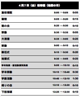 4月7日(金)についての連絡です。日程は右下を参照してください。