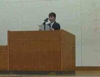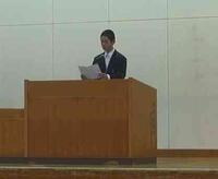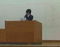 2年生代表の上山龍夏君は、2月に行われる立志式で抱負を堂々と発表したいこと、自身の授業態度をさらに向上させるとともに、周囲にも積極的に声かけをしていきたいこと、部活動では冬季練習に悔いが残らないよう全力で取り組みたいと発表しました。