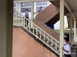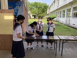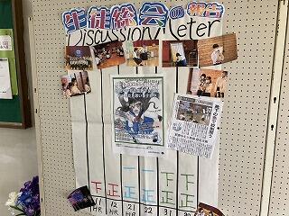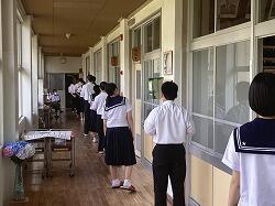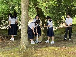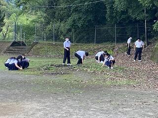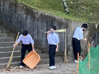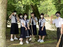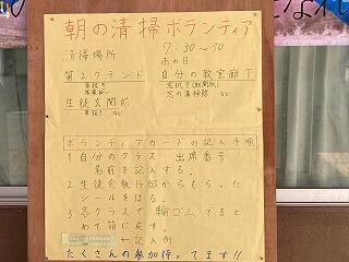 現在、生徒会活動の一環で清掃ボランティア募集をしています。また、先日行われた生徒総会での協議事項「靴下の色」については、白黒どちらでもいい(ただし、儀式は白で)ということになりました。生徒同士が多様な考えを出し合い、それをもとに教師と一緒になって導いた結論です。生徒会報告(生徒会発行)という形で、保護者の方々にもお知らせしました。